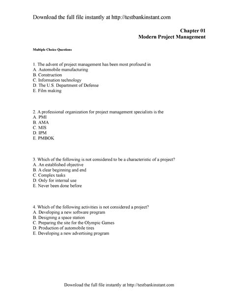 Download Multiple Choice Project Management Questions Larson Gray Reader